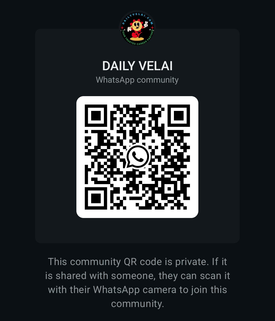 Welcome to the Dailyvelai.com community! 🚀 Get instant updates on the latest job openings and career alerts. Scan the QR code to join and stay connected with us!“