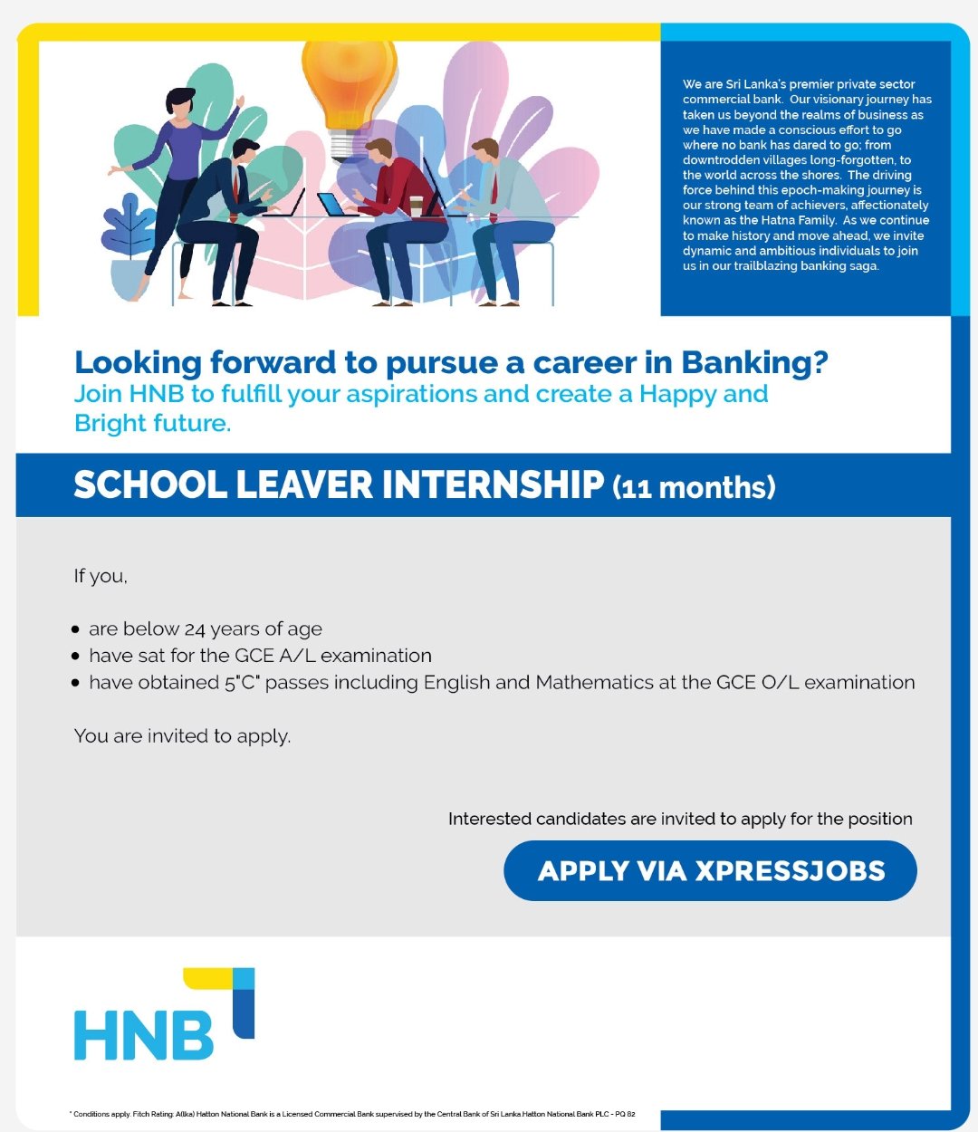 1. The HNB Bank Vacancies Internship Programme (For School Leavers)