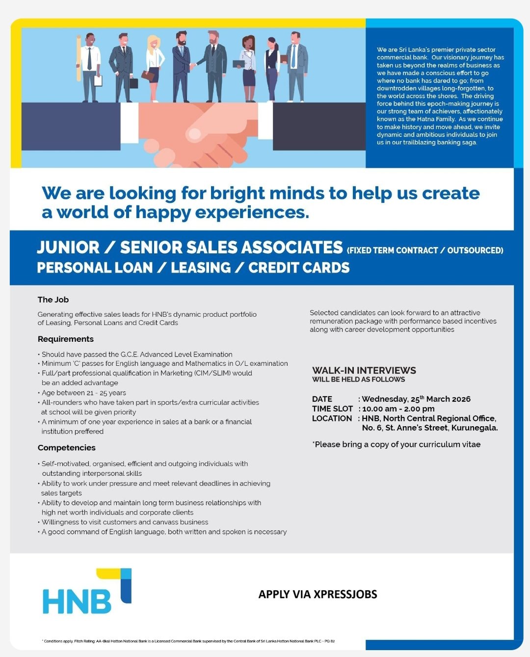 HNB maintains strict standards for its recruitment to ensure quality service.